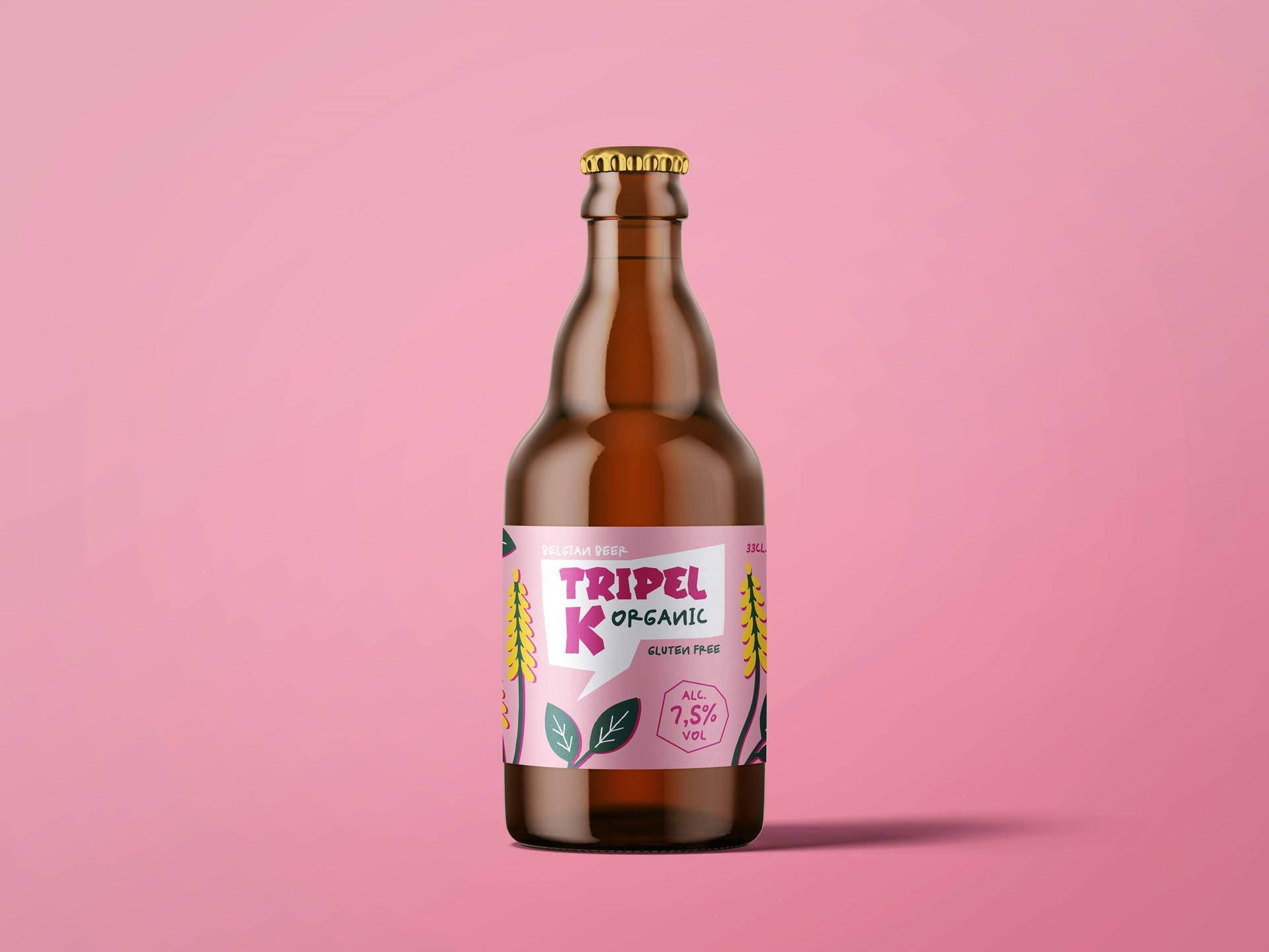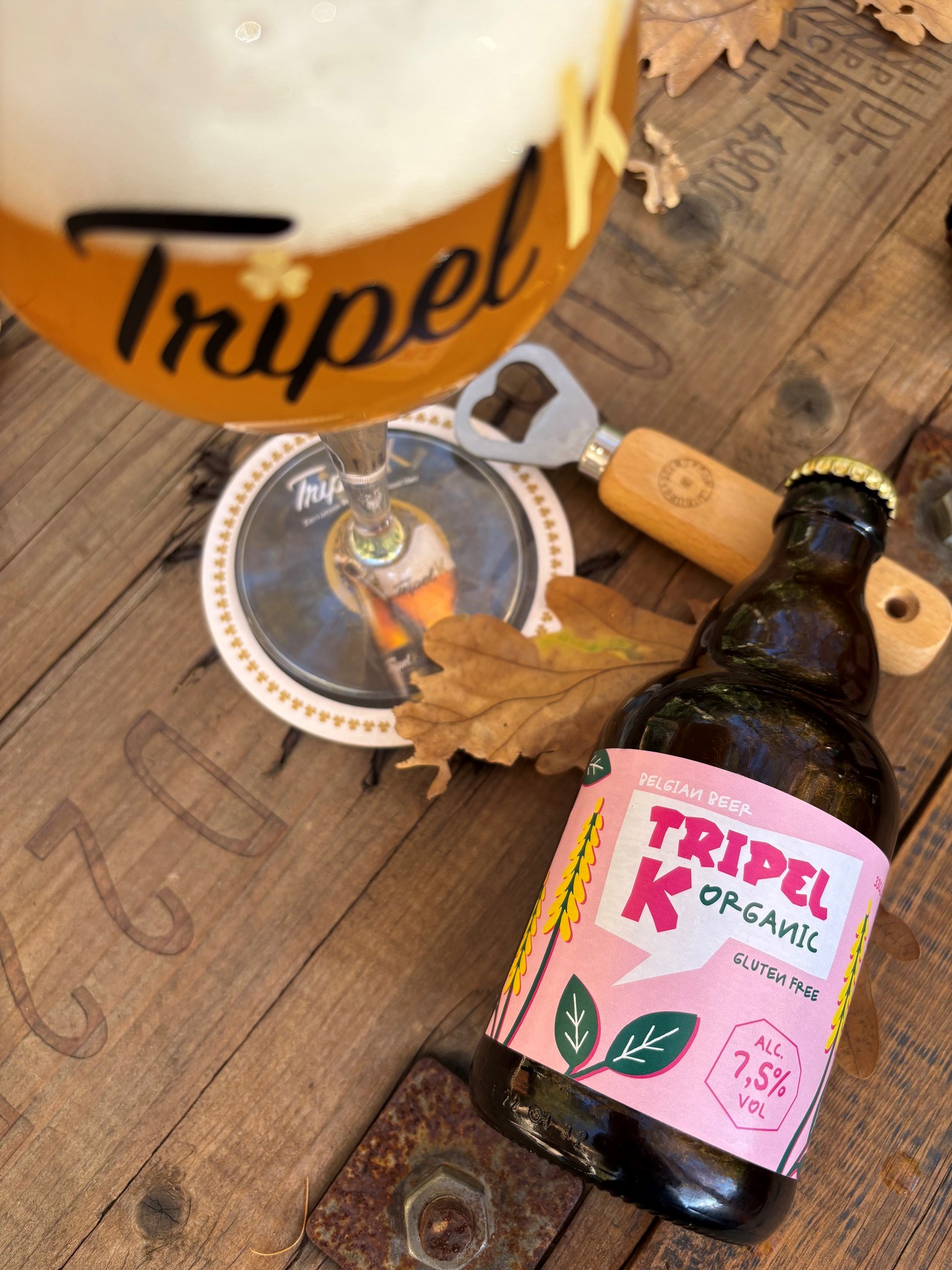 Tripel K Blond is a complex, golden-colored organic craft beer with a soft, sweet note, a balanced bitter aftertaste, and a full, creamy head.