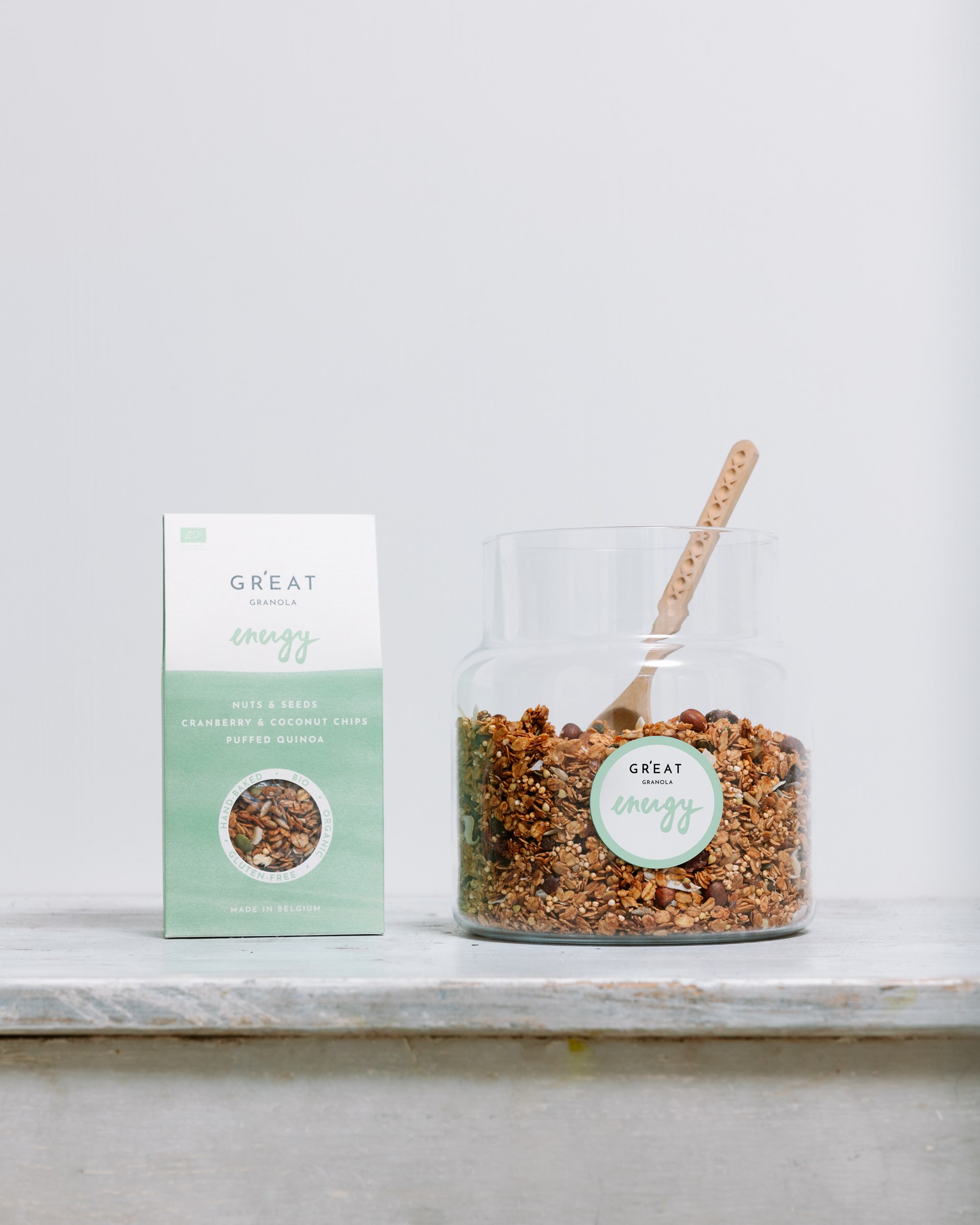 GR’EAT Granola is a Brussels-based company specializing in the artisanal production of organic and gluten-free granolas, porridges, and nut butters. The brand was created with the ambition of offering a healthier alternative to industrial breakfast cereals, focusing on simple, natural, and nutritionally balanced recipes.
