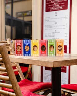 Nous proposons huit biscuits sucrés, immédiatement reconnaissables à leur emballage rayé. Tout a commencé avec notre spéculoos extra fin, mais la gamme s’est vite enrichie de nouvelles saveurs : Almond Crunch, Chocolate Pearl, Lemon, Pistachio et Chocolate Speculoos.
