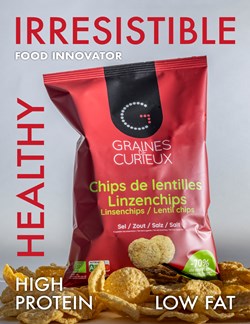 « Un apéro croustillant à base de lentilles, avec 70% de matières grasses en moins qu’une chips classique et une belle teneur en protéines et fibres.