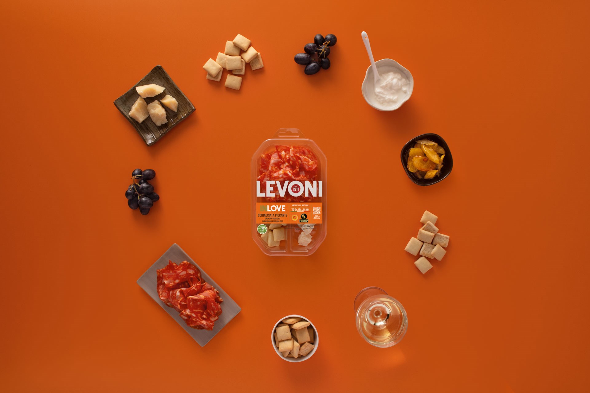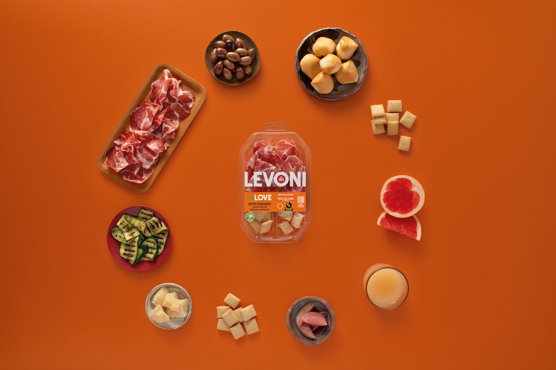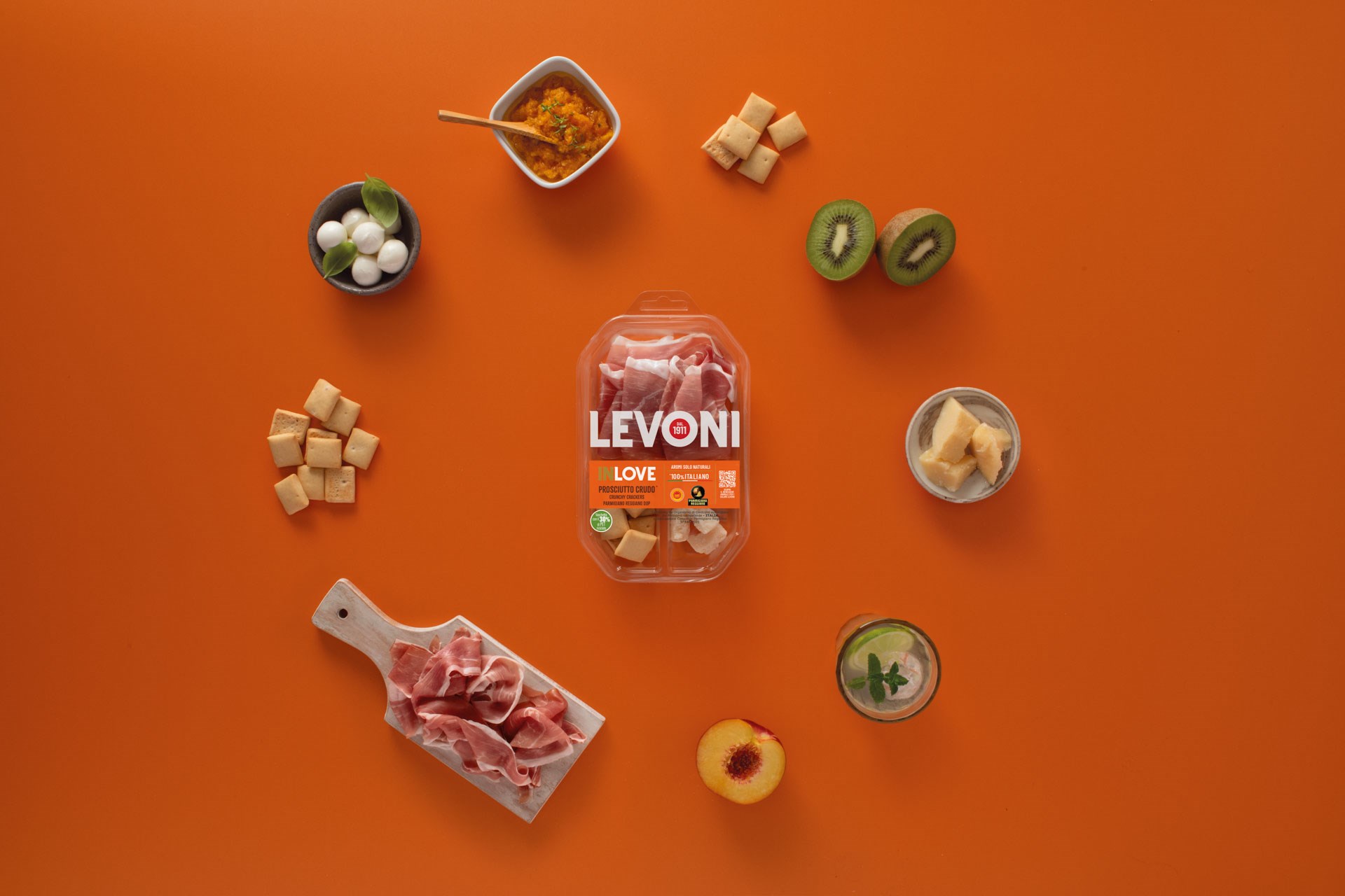 L’orange, la couleur de la créativité et des vibrations positives. InLove – anagramme de Levoni – est la nouvelle ligne de snacks, parfaite pour un goûter ou un apéritif, conçue pour tous les âges. Frais, innovant et prêt à conquérir le marché. Des ingrédients sélectionnés de haute qualité, combinés pour offrir une expérience unique, à déguster à tout moment de la journée. Avec InLove, impossible de ne pas tomber amoureux du goût !