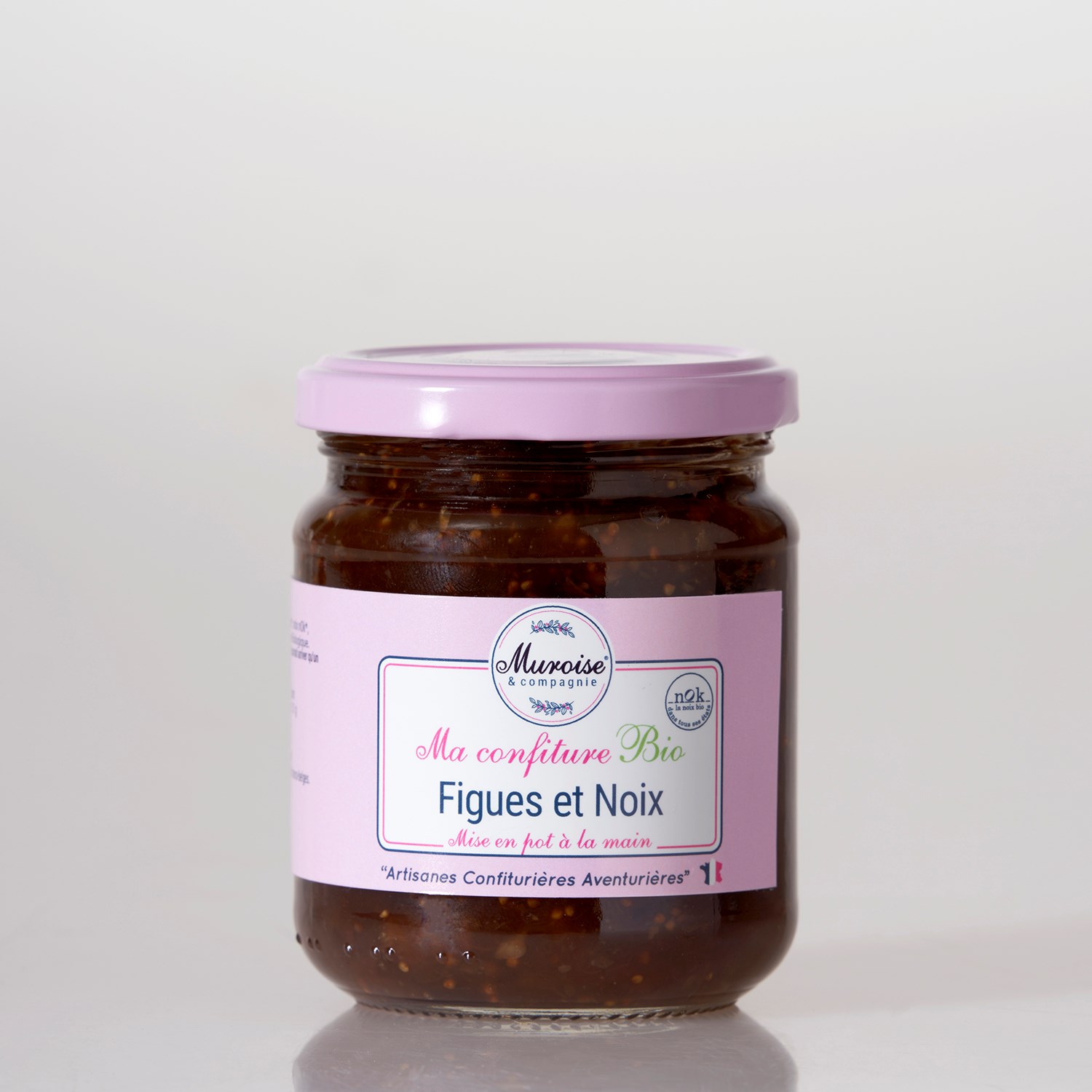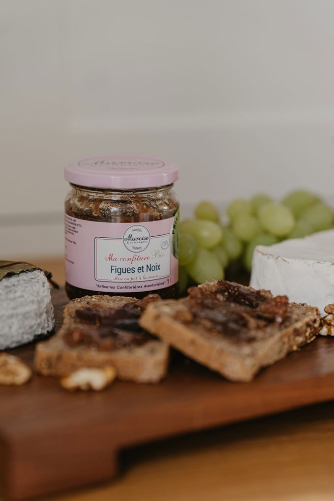 La confiture artisanale Bio Figue et Noix nOk est le fruit d’une rencontre évidente entre deux artisans passionnés : Muroise et compagnie, artisanes confiturières aventurières du vignoble nantais, et nOk, première marque bio franco-belge dédiée à la noix. Ensemble, nous avons imaginé une recette raffinée, généreuse et profondément gourmande, où le fruit et le fruit sec dialoguent avec élégance.