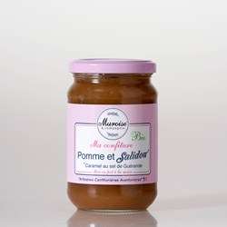 Les pommes bio, soigneusement sélectionnées, sont lentement confites afin de préserver leur fondant naturel et leur douceur fruitée. Elles s’enrobent ensuite du fameux caramel Salidou®, élaboré avec du lait, du beurre, de la crème et une pointe de fleur de sel de Guérande. De cette rencontre naît une confiture généreuse, fondante et profondément régressive, où le fruit et le caramel dialoguent avec justesse et équilibre.