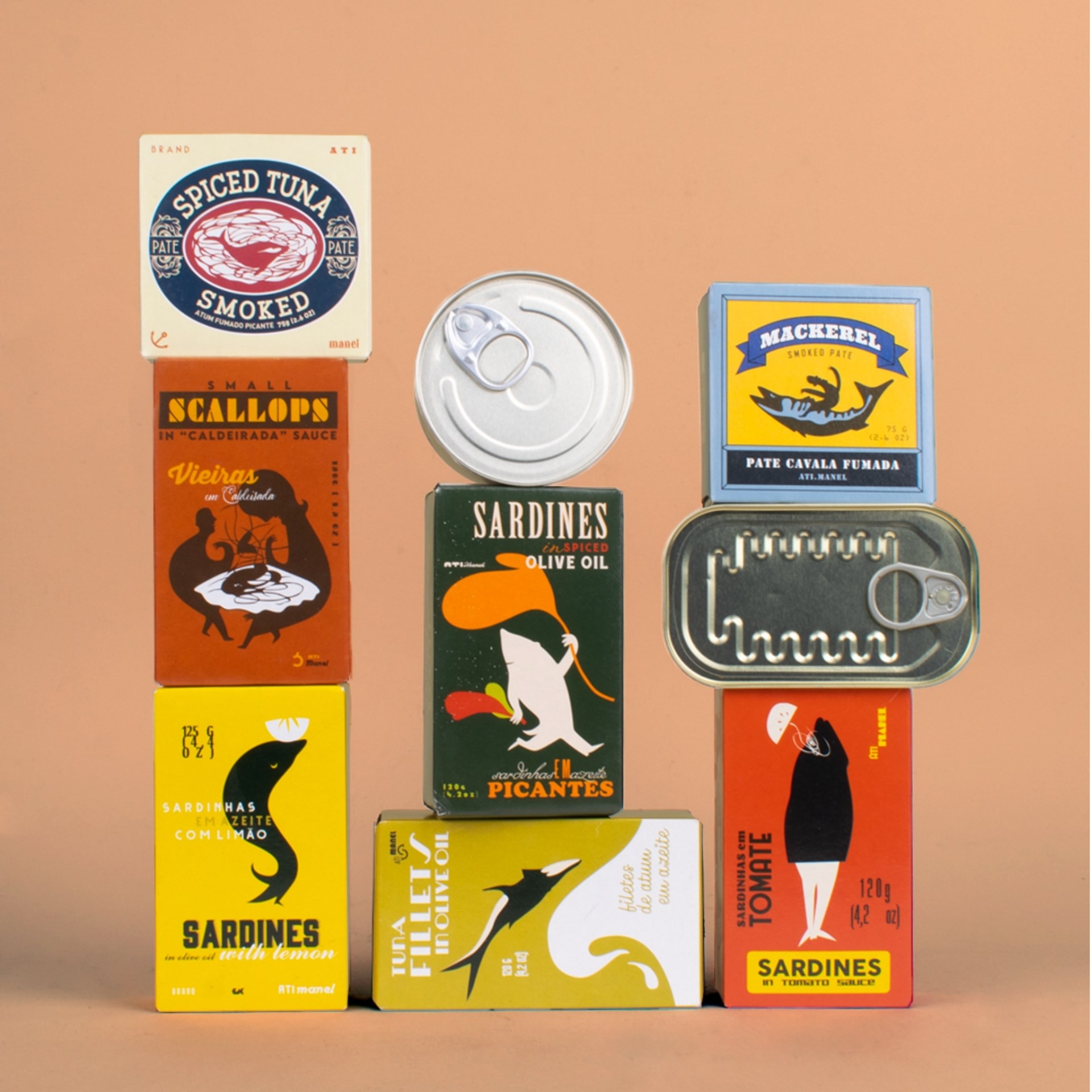 Ati Manel fait revivre la riche tradition portugaise des conserves avec une touche contemporaine. La marque sélectionne les meilleurs poissons, pêchés à la bonne saison, et les transforme selon des méthodes artisanales qui respectent leur saveur et leur texture authentiques.