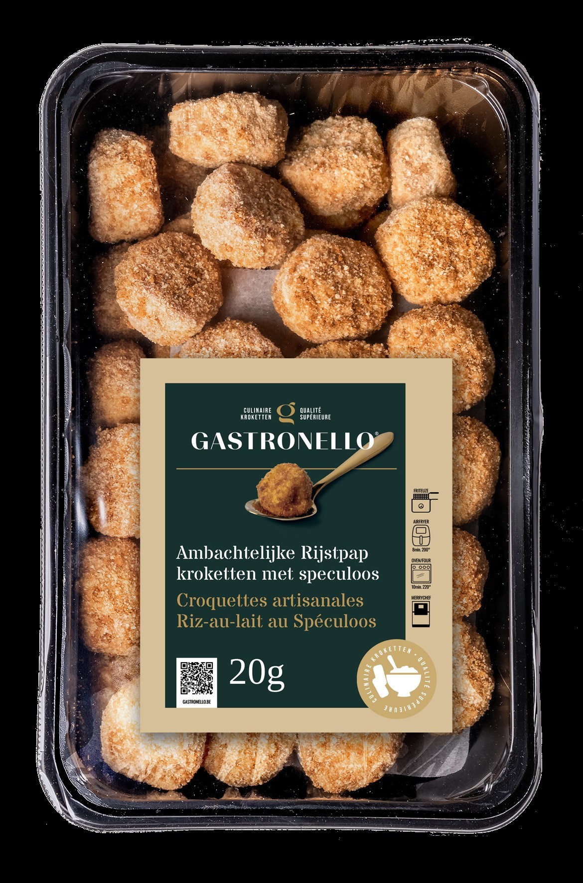 Uniek en verrassend van smaak! Een kroketje dat zowel in de friteuse, oven, airfyer en merrychef.