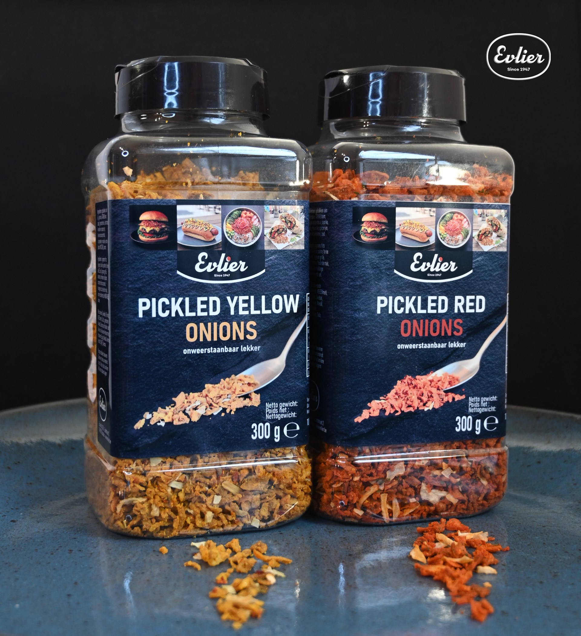 Evlier présente une innovation unique qui fait toute la différence dans l’assiette : des oignons rouges marinés, plongés dans un mélange végétal d’herbes, d’épices et d’arômes naturels, qui créent une saveur umami prononcée aux accents de fermentation douce, le tout sans aucun colorant.