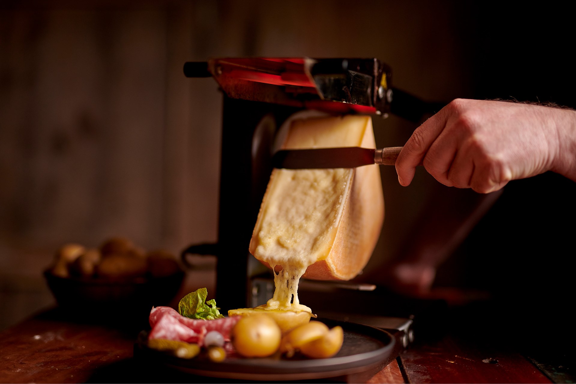 Een 100 % Belgische raclette met abdijkaaskarakter, gemaakt van lokale melk en ontwikkeld voor een perfecte smelt in wielvorm, zoals een echte traditionele raclette.