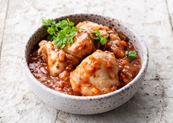 Malse stukjes kip in een rijke, langzaam gegaarde Italiaanse ossobuco-saus op basis van tomaten, witte wijn, ui, wortel en selderij. Een mediterrane klassieker die perfect combineert met pasta of aardappelpuree.