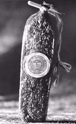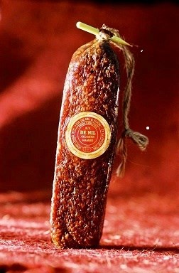 Vandaag worden droge worsten in een hoog machinaal tempo afgevuld en afgeclipt in voorgebonden en voorgevormde kunstdarmen. Wij, De Nil, brengen nog altijd handmatig een natuurlijk vlies rond de vleesmassa en gebruiken een puntig (plastic) stokje in plaats van een clip.