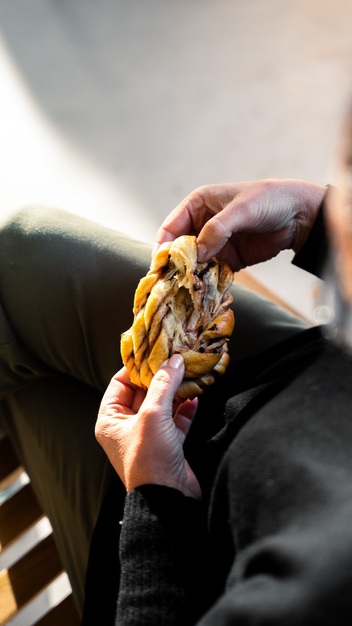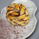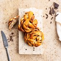 Een Belgische variant van onze Scandinavische buns. Ons zachte briochedeeg wordt uitgerold en royaal gevuld met een smeuïg mengsel van cacao, chocolade korels en boter. Het deeg wordt vervolgens met de hand geknoopt tot prachtige buns en goudbruin gebakken. Het resultaat is een heerlijk zachte bun met diepe chocoladesmaken en een perfect gebalanceerde zoete toets.