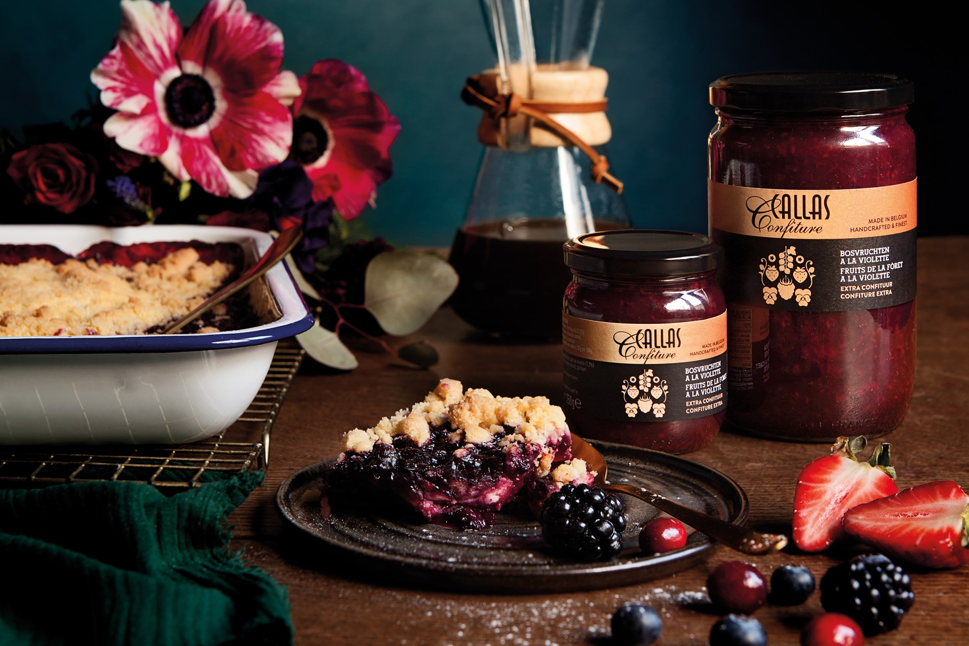 Onze confituren worden in ons eigen atelier in België met de hand gekookt volgens traditionele methodes, met een hoog fruitgehalte en zonder kunstmatige toevoegingen.