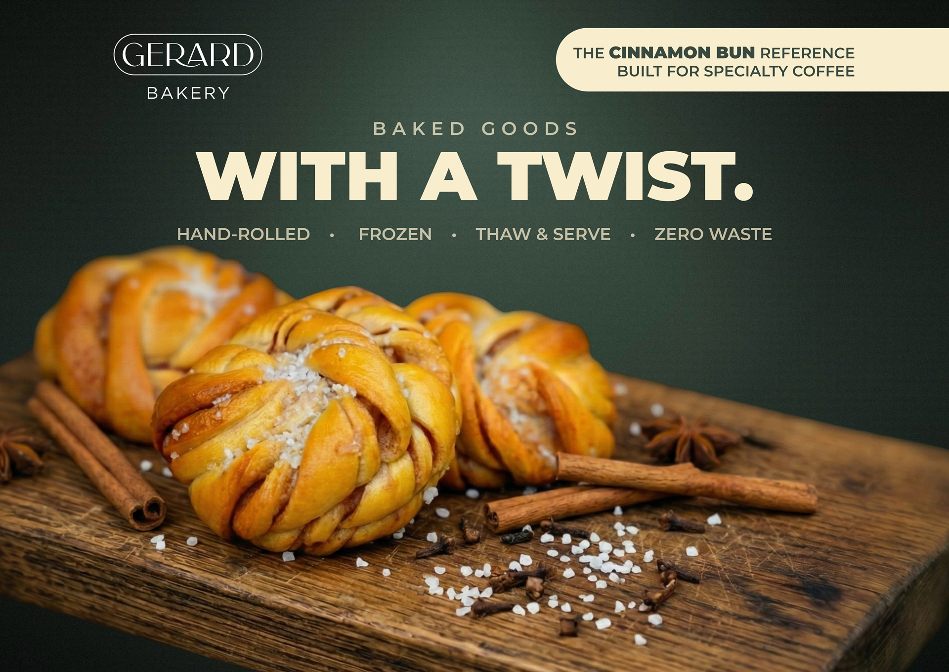 Gérard Bakery is een Belgische B2B bakkerij gespecialiseerd in premium Scandinavische cinnamon buns voor retail en foodservice. Onze handgeknoopte buns worden volledig afgewerkt en diepgevroren geleverd, waardoor klanten eenvoudig kunnen werken met constante kwaliteit en minimale food waste. Gérard Bakery combineert authentieke recepten met een schaalbaar concept dat perfect aansluit bij specialty coffee bars, foodservice en premium retail.